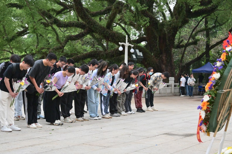 全体成员在广州起义纪念碑前列队、默哀,行三鞠躬礼,随后敬献鲜花,深刻缅怀革命先烈前赴后继、舍生忘死的革命精神。饮水思源,同学们不会忘记,鲜红的党旗,是千千万万个先烈用热血染红的。通过缅怀先烈,同学们时刻提醒自己不忘党员初心,弘扬革命精神。