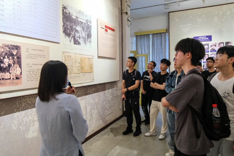 下午14时许,全体成员进入鲁迅纪念馆参观。这座建筑不仅是中山大学校徽的主体图案,更承载着厚重的历史记忆。同学们跟随讲解员的脚步,参观《钟声1924:中国国民党第一次全国代表大会暨第一次国共合作历史陈列》展区,重温百年前的革命岁月。在“嘘!您已走进历史”的标牌后,同学们走进《在钟楼上——鲁迅与广东》展厅,通过馆内陈列的书信、手稿和照片等了解鲁迅的一生,也了解了这位中国文化巨人与广州、中山大学的故事。