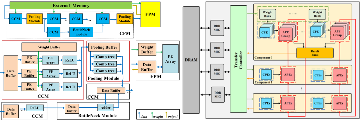 围绕人工智能主流算法模型,如ResNet、Transformer、GNN以及Nerf等,开展了一系列硬件加速研究工作。在系统架构层面上,提出了面向ResNet等前馈神经网络的多计算节点流水式架构的硬件设计与关键优化理论,实现更高计算效率的硬件加速器以及具备良好的系统规模可拓展性。在软硬协同设计层面,提出了面向Transformer的动态令牌剪枝优化技术及其硬件加速技术。围绕图神经网络密集与稀疏计算相交替的特点,以 GCN、R-GCN等具有代表性的GNN 为主要加 速对象,结合其数据与模型特点寻找加速性能瓶颈,进行 了FPGA 硬件设计。近三年发表IEEE权威期刊及会议论文20余篇,包括TVLSI、HPEC、FCCM等。授权发明专利20余项。相关工作得到国家自然科学基金等国家、省部级及企业横向委托项目的支持。