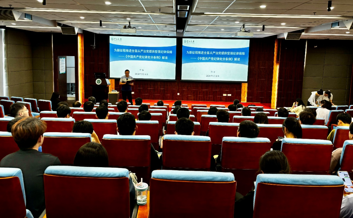 为深入学习贯彻习近平总书记关于开展党纪学习教育的重要讲话和重要指示批示精神,扎实开展党纪学习教育,营造学纪、知纪、明纪、守纪的浓厚氛围,516日下午,e世博(esball)官方网站 党委理论学习中心组以扩大会议形式召开党纪学习教育专题学习会。会议邀请马克思主义e世博 邓华副教授作《为新征程全面从严治党提供坚强纪律保障——<中国共产党纪律处分条例>解读》辅导报告,e世博 党委理论学习中心组成员、各党支部书记、e世博 师生党员近百人参加。会议由e世博 党委书记刘飞同志主持。