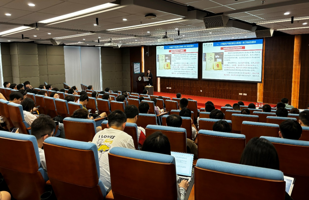 邓华副教授的报告首先系统回顾了《条例》修订历程和逻辑,结合习近平总书记关于党的纪律建设重要论述,深入阐释了《条例》修订的历史背景。随后,她分层逐章地领学《条例》的主旨要义,并结合丰富的真实案例生动解读政治纪律、组织纪律、廉洁纪律、群众纪律、工作纪律和生活纪律的内涵要求。她提到,学习贯彻落实《条例》要与学习习近平新时代中国特色社会主义思想相结合、要与学习党章及其他党内法规相结合。她强调,党的纪律是党员干部约束自身行为的标准和遵循,师生党员干部要深入逐章逐条学习《条例》,强化纪律意识和规矩意识,切实做到学纪、知纪、明纪、守纪