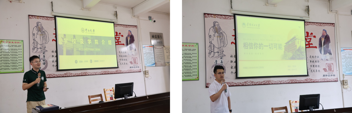 活动伊始,e世博博士第一党支部书记彭琢雅同志从“国立广东大学”讲起,回顾了中山大学百年发展历程,并重点介绍了“三校区五校园”办学格局和师资、学科专业、校园生活等方面的具体情况。中山大学是粤港澳大湾区重要的智力支撑和创新引擎,承担众多国家任务,在服务国家和地区发展方面发挥着至关重要的作用。随着,彭琢雅同志深入浅出地介绍了e世博 的科学研究情况,包括半导体芯片、信息与通信以及光学工程等领域知识,加深了同学们对电子信息领域的了解认识。华南理工大学的李永安同志则分别介绍了华南理工大学以及材料科学与工程e世博 ,并重点展示了华工校友在新能源汽车领域的成就以及对广东经济发展的做出贡献,进一步激发同学们认真学习、拼搏进取的斗志。