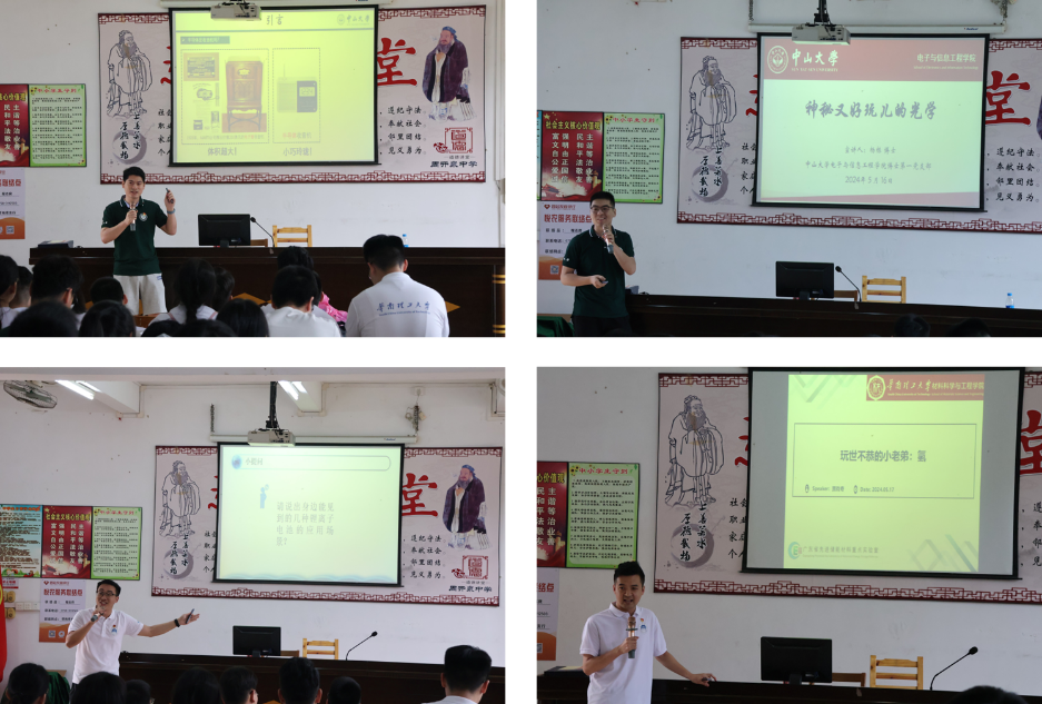 为贯彻落实党的二十大精神,积极响应广东省“百千万工程”号召,促进科技知识传播与普及,培育青少年的科学志趣,2024年5月17日下午,中山大学e世博(esball)官方网站 博士第一党支部与华南理工大学材料科学与工程e世博 大学城金属博士党支部联合开展“博士科普行”主题党日活动。两校博士生党员在肇庆四会市周开泉中学开展“科普报告”等系列活动,吸引了众多中学师生参加,助力提升青少年的科学素养,引导树立“科技报国”远大理想。